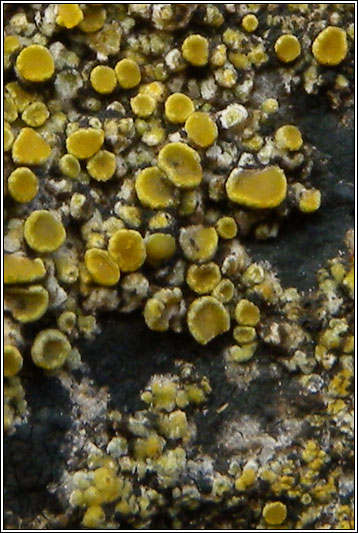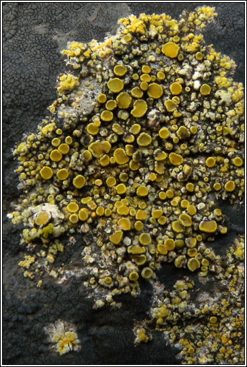 Flavoplaca maritima (Caloplaca maritima) on coastal rock. Snave, Co.Cork. February 2009