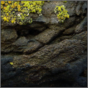 Immediately above: Verrucaria fusconigrescens on coastal wall, February 2009